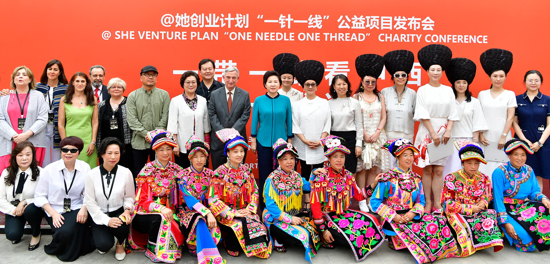 文化振兴是乡村振兴战略的重要组成,为充分发挥女性在乡村振兴战略中的重要作用,促进女性在文化领域创就业,中国妇女发展基金会于2019年6月发起@她创业计划—“一针一线女性发展公益项目”,旨在传承、保护、发扬中国独特且有产业发展潜力的手工技艺,赋能女性手艺传承人,帮助更多的女性和家庭走出困境,同时助力中外文化交流,再现中国手工技艺之美。2021年10月,在爱特思集团支持下,@她创业计划—“一针一线”中西艺术工坊落地中国丝绸发源地浙江德清。