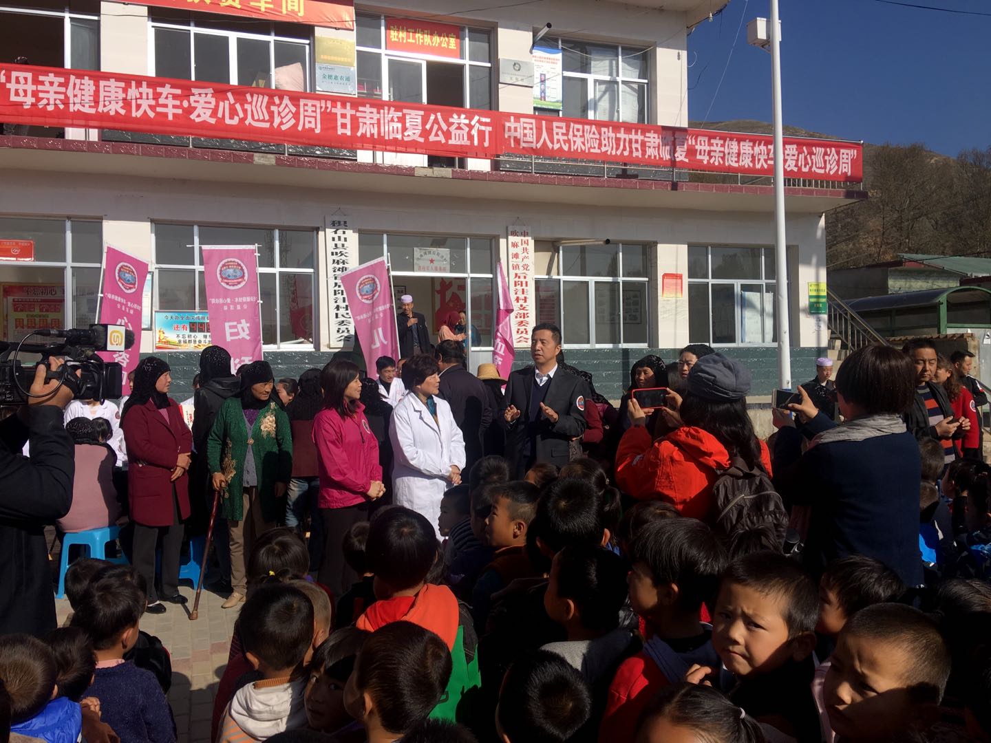 快讯 2019年10月18日上午,母亲健康快车爱心巡诊医疗团队来到甘肃省积石山县吹麻滩镇后阳洼村开展义诊活动,现场群众及后阳洼村小学的孩子们,接受了心血管、妇科、儿科及眼科的义诊,积石山县县委副书记王华向中国妇基会、中国人民保险来到积石山县后阳洼村,开展巡诊活动表达了感谢之情,感谢妇基会助力积石山县的攻坚脱贫工作!